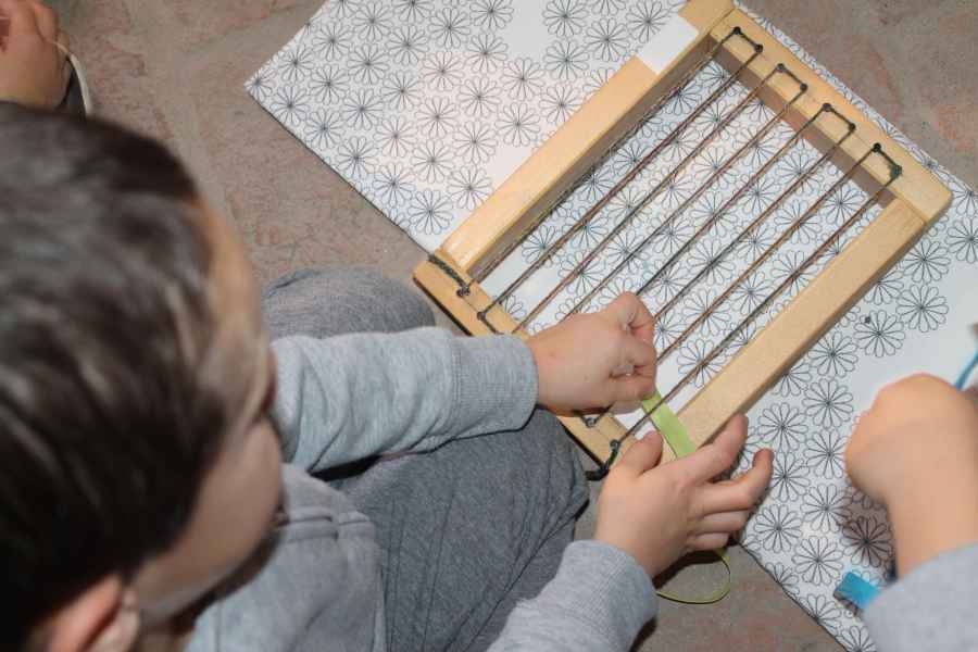 Come tanti piccoli artigiani, ci siamo messi al lavoro e ognuno ha costruito diversi piccoli telai: utilizzando